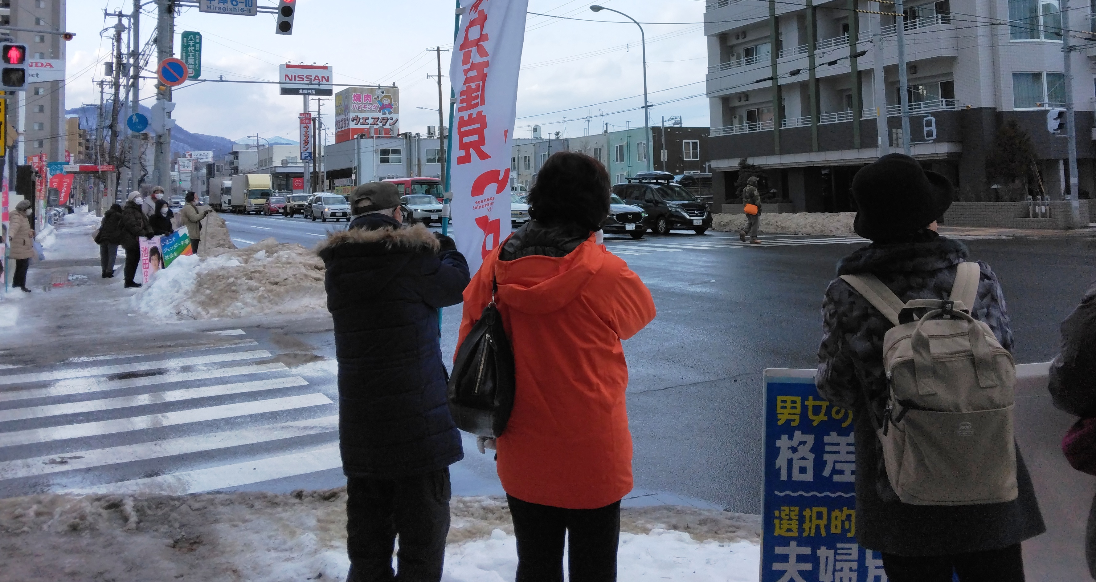 参加者からは、市営住宅家賃の値上げの他、札幌でも高まっている外国人排除、バスの減便、介護職員の処遇改善、道路や歩道の整備などの問題が出されました。