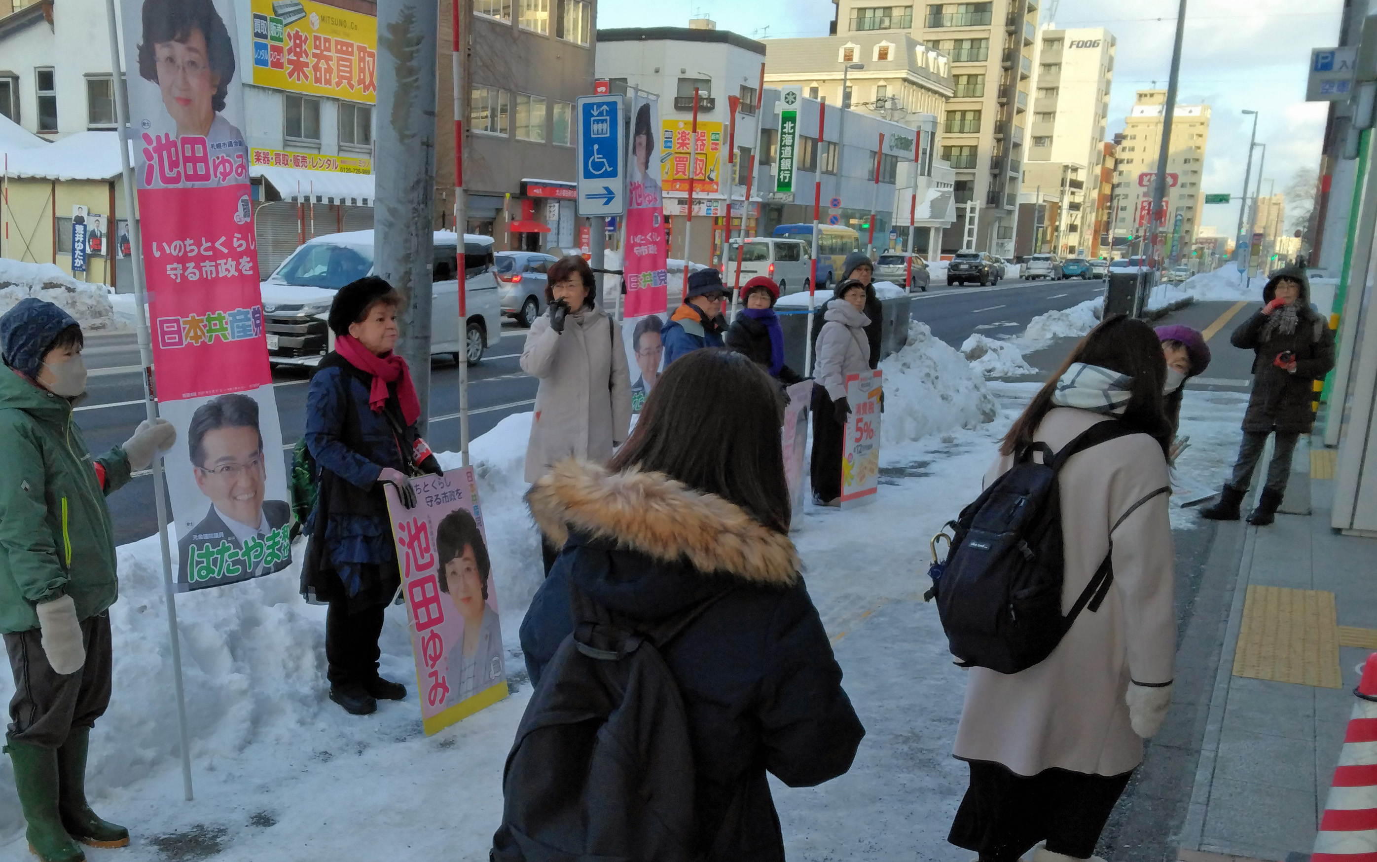 「札幌市民の所得は20政令市の中で最下位を行ったり来たりする状況。出生率も0・96と少子化に歯止めがかからない状況。市民の暮らしに寄りそう市政、国政にしていくことが求められている」と語りました。
